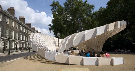 Every year Charles Walker and Martin Self, two professors of the Architectural Association in London, organize a competition for the design of a summer pavilion open to twelve student participants. The winning entry this year was entitled "Swoosh," created by the Mexican student Valeria García Abarca. The jury was presided by Walker and made up of Larry Malcic, head of design at HOK, and Alex de Rijke of dRMM.