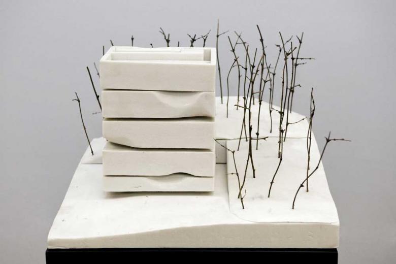 The two extremes in the show are represented on one hand by the railway station in Lhasa, Tibet, designed by Cui Kai from the China Architecture Design & Research Group in Beijing and on the other hand a series of follies, designed by Wang Yun of Atelier Fronti, also from Beijing, for the Xixi Wetland Park in Hangzhou. The railway station in Lhasa, designed with reference to the historic Tibetan palace architecture, consists of a huge hall for several tracks – with currently five trains arriving every day.