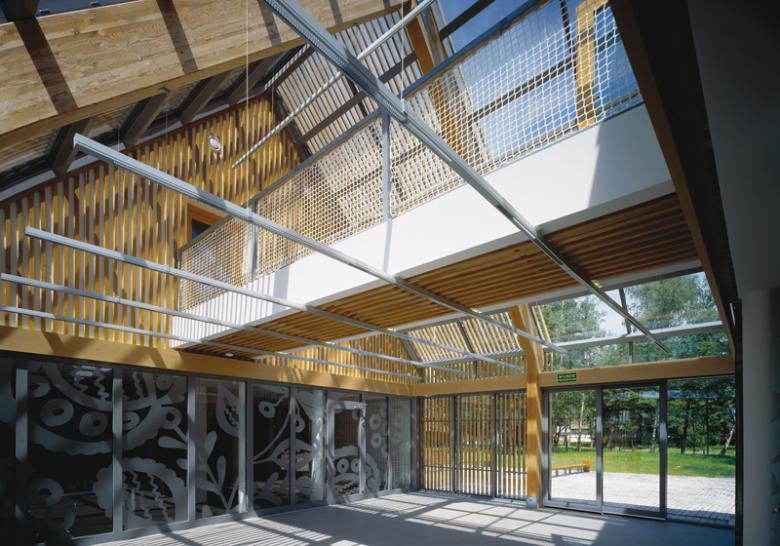 It boasts a clear design assumptions – linearity and repeatability of the form, humbleness and use of simple materials. This contrasts favorably with interior "organic" graphics - dull glass floral elements, light that is placed onto walls in the form of vivid stripes. Spatial and educational values of and ethnographic park are easily implemented into contemporary architecture of an administrative building of Opole Open-Air Museum of Rural Architecture . Paradoxicaly one may tempt to say, that the art of compromise is made present in every detail of uncompromising manner object. This building proves that Silesian architecture is not afraid of challenges and stands on a high international level; the notion of open-air museum is still enriched with new meanings.