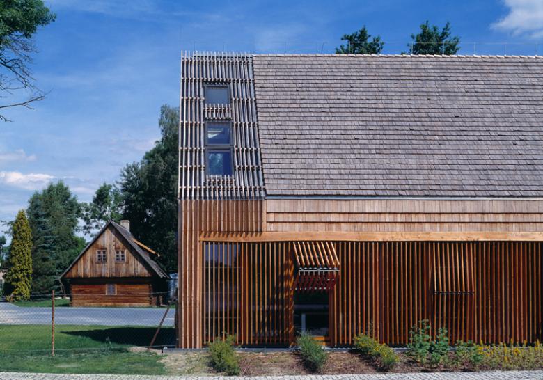 Valiable architecture does not exist without high quality materials. Disciplined use of detail, large, flat and uniform facade surfaces, the severity of plastic, extensive glazing- all these modern features show up in a simple block of a gable roof. To avoid styling was not only necessary, it was even desirable and became the essence of compromise. It seems like impossible to make: contemporary functionality dressed into traditional folk with no Cepelia effect.