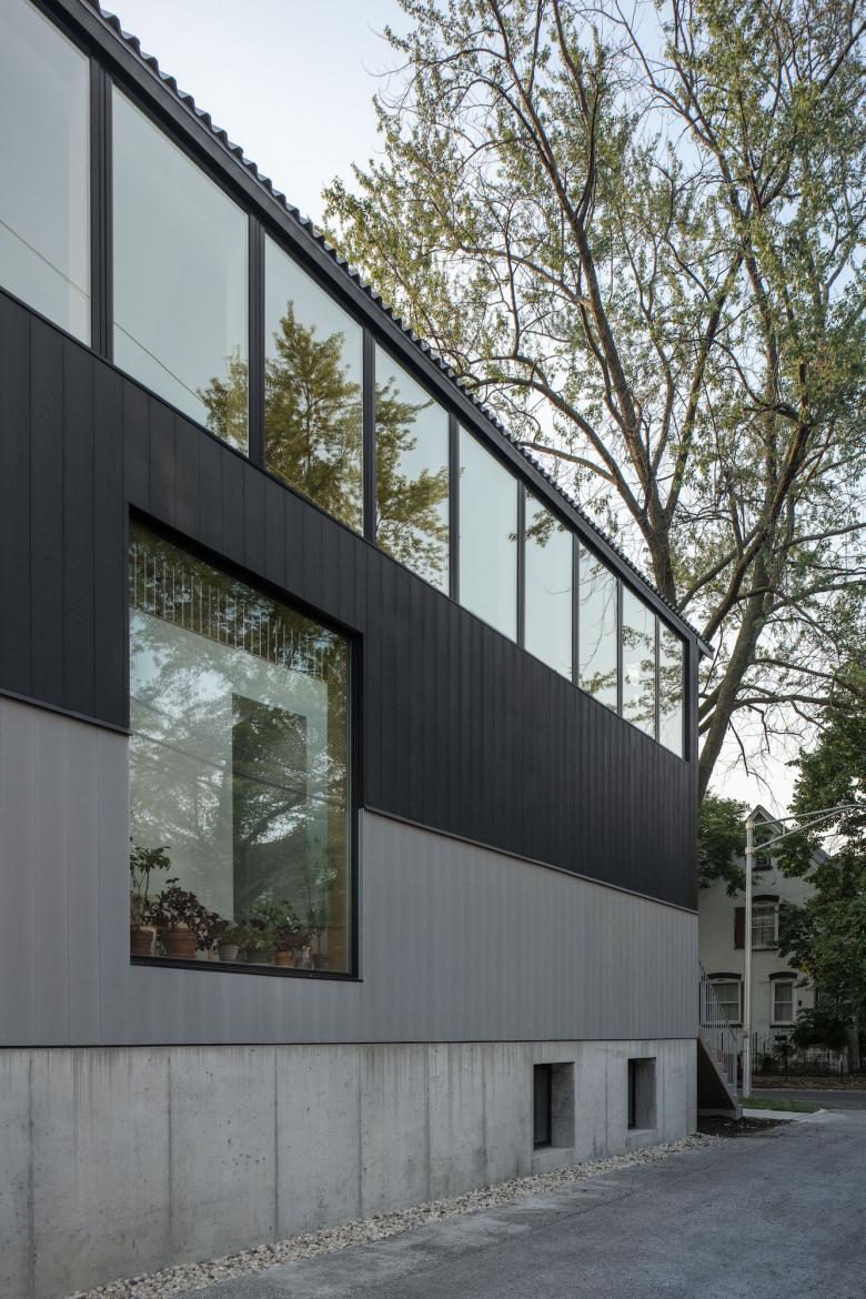 For this house bordering an alleyway on a traditional Chicago lot, Kwong Von Glinow flips the traditional residential section, arraying bedrooms on the first floor and living spaces on the second. This approach supports contemporary ways of living, emphasizing communal areas, interconnectivity, and flexible live-work spaces that receive ample natural light and engage the surrounding urban context.