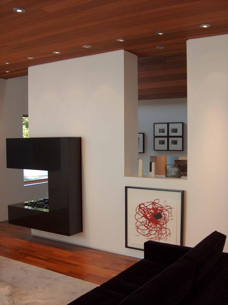 Due to the unique nature of the elongated structure and exaggerated height with stick frame construction, the residence naturally lent itself to superinsulated, SIPS, thermal mass for a slab-on-grade structure (heat storage in a cold weather climate). The residence was more of a high-end art gallery that doubled as living quarters for the curator than the other way around. The latest smart-home technology, lighting, smart boiler, security, sound systems were all integrated into the design.