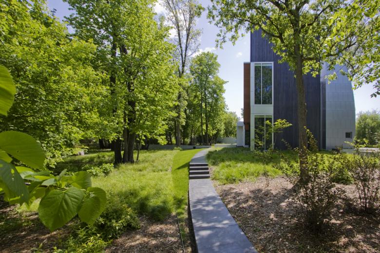 Modern, agrarian archetypes, or abstracted farmstead structures were the impetus for this design, respecting the heritage of the Plains farming community with a critical eye toward, color, texture, massing. This project is a modern icon of the rural US Midwest.