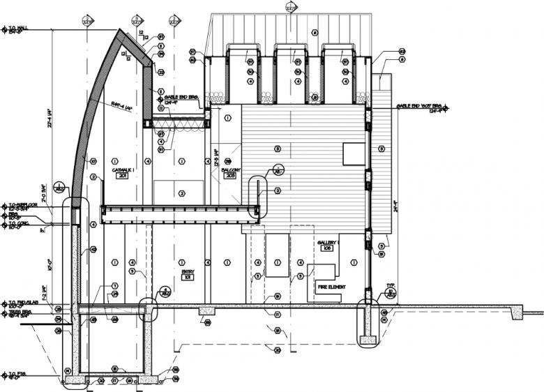 Section through tower and art hall
