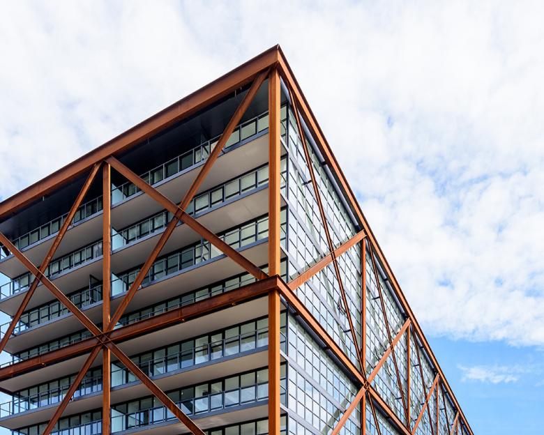 The weathering steel is a special material that enhances the design of 2112 and the black steel sections add to the brick pattern on 2030.