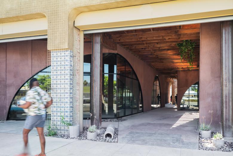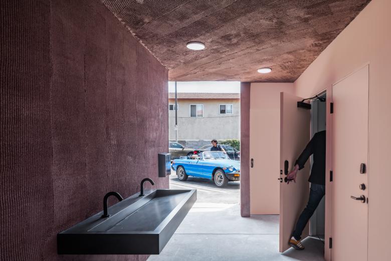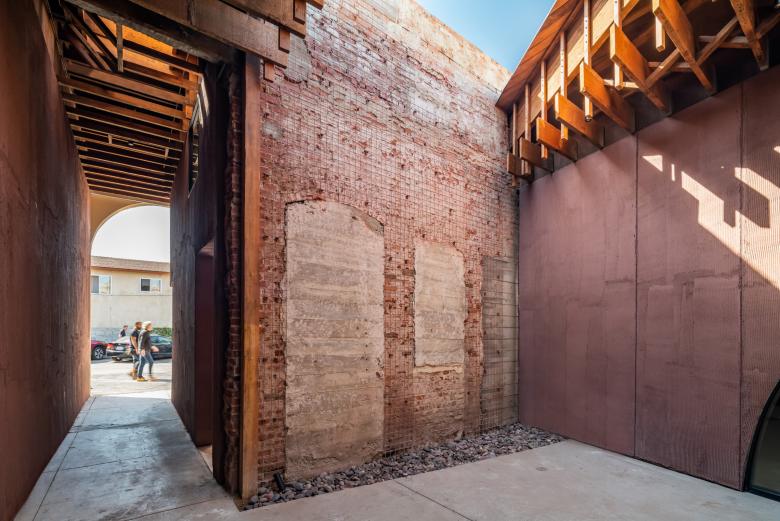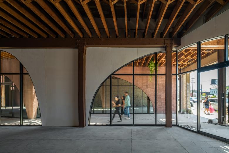 Situated along the Atwater Village commercial corridor of Los Angeles, the mid-block passageway acts as a paseo and arcade connecting sidewalk and municipal parking via a sequence of interconnected spaces.