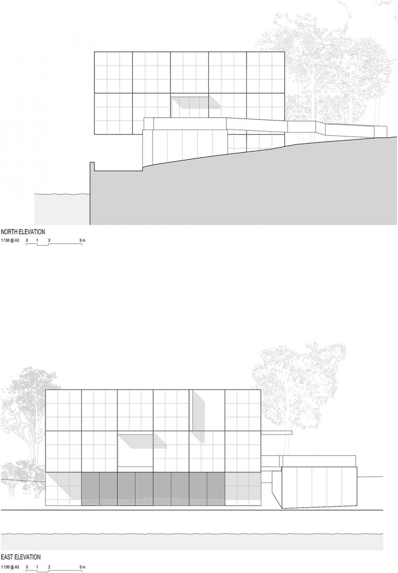 East elevation overlooking canal, panels closed