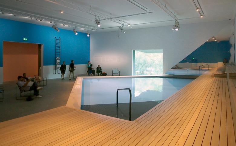 Interior during 2016 Venice Architecture Biennale, with "The Pool" on display