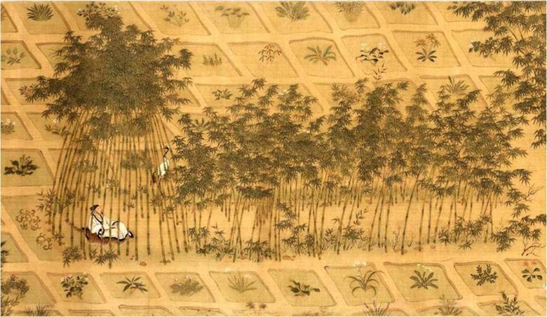 The sixteenth century painter Qiu Ying created a scroll of the garden of 10th century historian Sima Guang in Luoyang, named Garden of Self-Enjoyment. One section of this scroll depicts a ‘Studio for Planting Bamboo’.