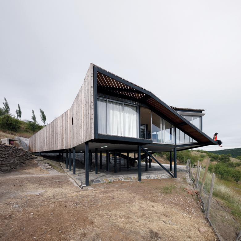 This house, located in the Central Valley of Chile —at 5 minutes form the city—, is like a statement, as the design and building process were so unsteady, starting with the site —in a very steeped hill— to the budget limitations.