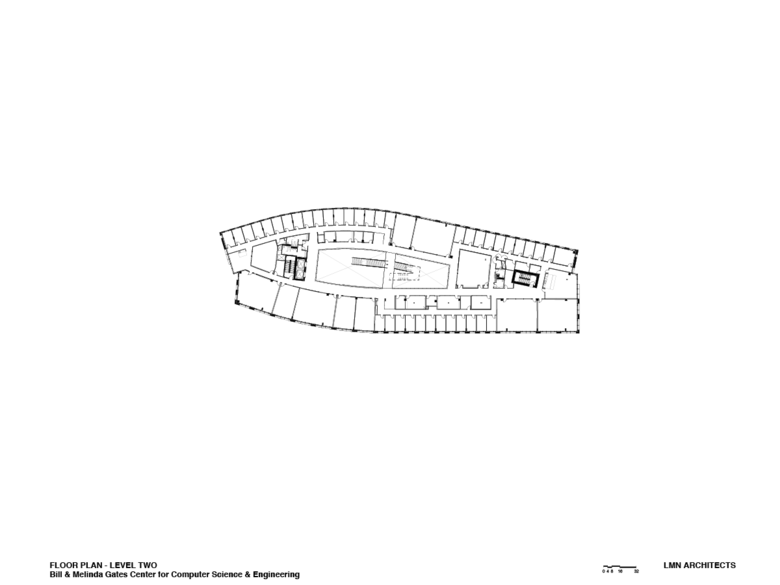 Located across a major campus thoroughfare from the Allen Center, the new Gates Center creates a second hub of Computer Science at the University of Washington. The new building establishes a civic external presence to the program, housing a new café at street level; and it enhances the entries to neighboring buildings by establishing new grade-level plazas that connect to the broader campus network. Over its length, the building navigates over 35 feet in grade difference, accommodates an access road through its footprint, and locates strategic gathering spaces at its ends to visually connect it with views to the Allen Center, Lake Washington and Cascade Mountains beyond.