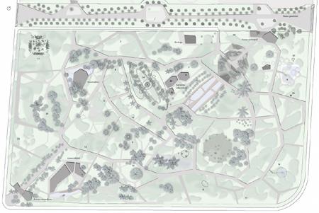After various geometric patterns were tried out, a model inspired by one of the trees in the garden was chosen. The outline of its branches inspired the principle of the master plan, whose resulting abstraction was grafted onto the existing layout of the botanical garden. The paths were arranged in a "layered" hierarchy of different sizes and materials, and the branches cut or moved to make them coincide with the existing paths.