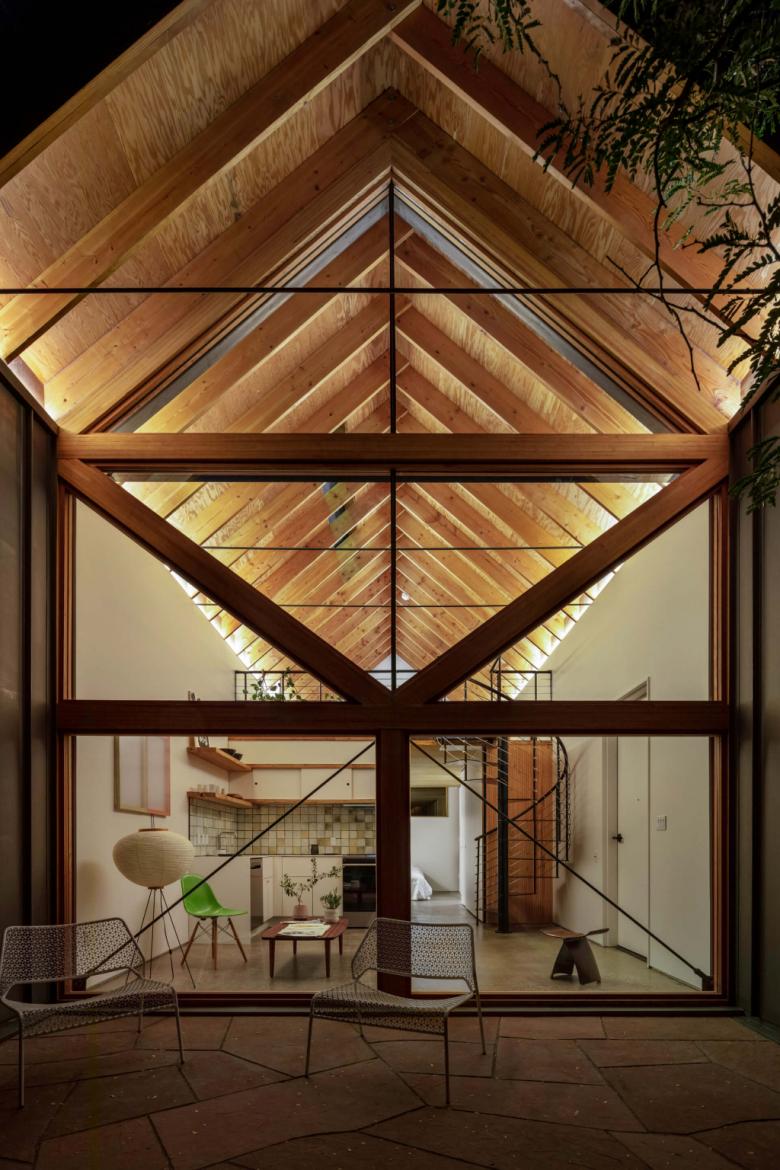 The A.D.U. scores well for energy efficiency. The envelope is tight and well insulated. Radiant floor heating and cooling keep the indoor climate comfortable. Lighting, security, HVAC, and the operable skylight can all be controlled by the occupant’s phone, integrating the systems and cutting down on energy waste. The home received a Home Energy Rating System (HERS) score of 33, not far off from Europe’s stringent Passive House requirement of HERS 20. For reference, a new standard home scores HERS 100 and an Energy Smart home scores HERS 85.