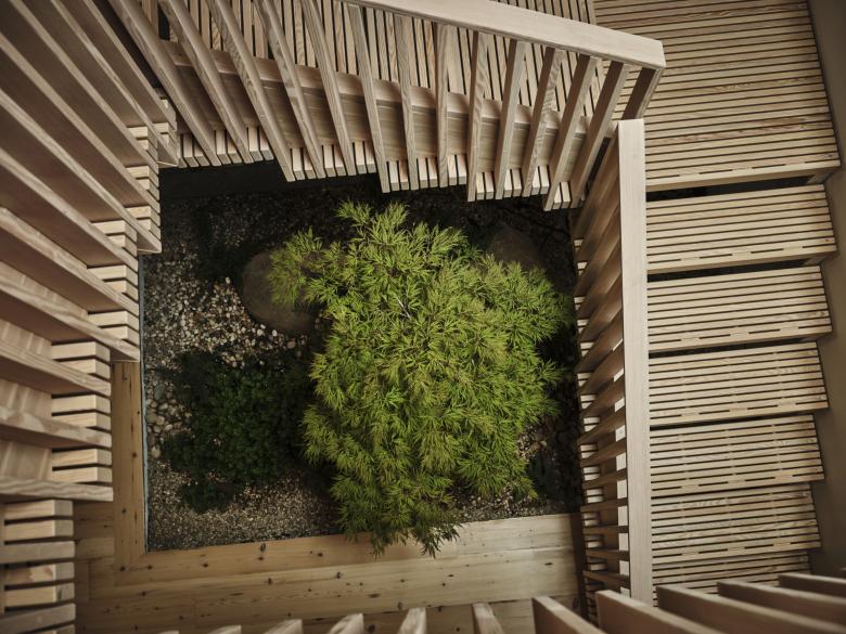 Material inventions and experiments are among the highlights of the interior aesthetic in addition to the mass timber shell.