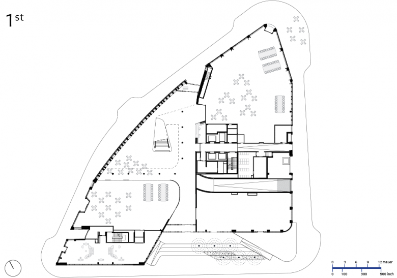 As the building is at the geographical center of Boston, located at an important city and state transport interchange, it is deeply connected to its city. When we first arrived we were taken by the views of all the blue hills surrounding the city, and decided that we must incorporate a public roof terrace into the building.