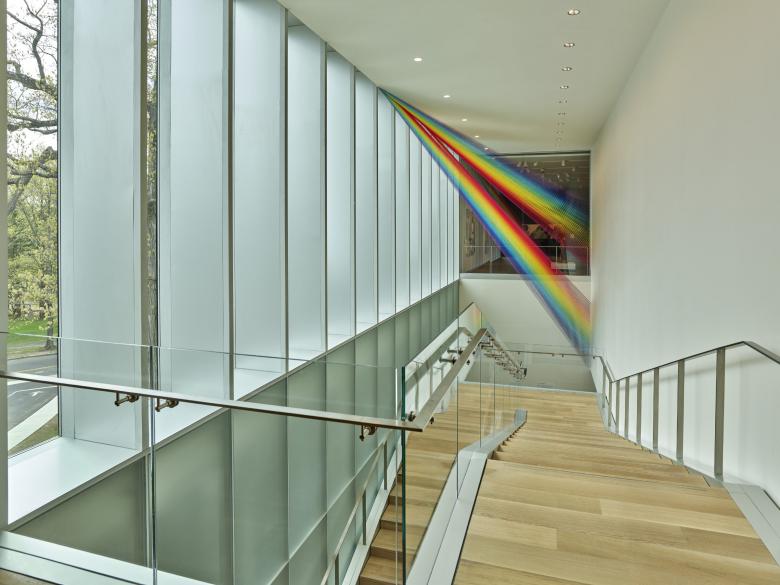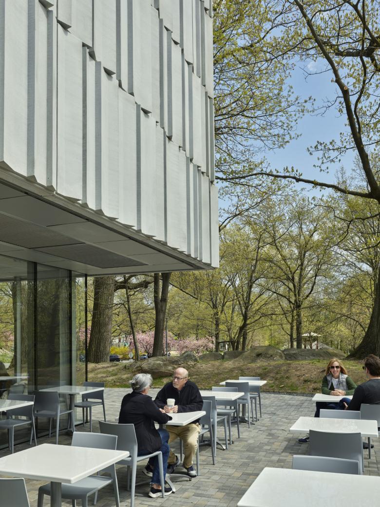 New public programs (lobby, café, gift shop and multi-purpose lecture hall) are organized on a single floor located twenty-five feet below the galleries at the level of the park. The new east-facing entrance is now highly visible and easily accessible to visitors arriving by car or on foot. As a result, the new Bruce is now experienced as a museum in the landscape.