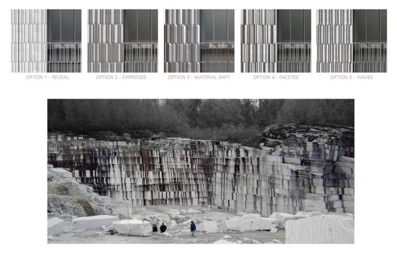 The design of the exterior façade took its inspiration from two local precedents that have stone as the primary material reference – quarry and lace walls.