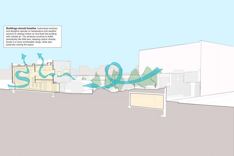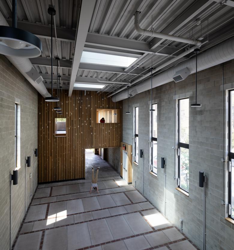 Carroll Hall is a hidden botanical walled garden and series of buildings that explore material reuse of the site and ideas of time travel and ecology to create immersive, unlikely experiences. Visitors continually discover the unexpected within an architecture of crafted materials and unconventional construction techniques. The buildings breathe with automated windows and skylights to naturally ventilate. Handmade mosaic murals tell stories of underground creatures. There are moving walls and secret doors. The plants are an idealized woodland, dressed-up cousins of what might have grown along the edges of fields and farms past. Birds, bees and butterflies are invited back. Fountains and water features collect and recycle stormwater for irrigation. There is interdependence between plants, animals, people, and architecture. It is a rare and highly specific formal space in New York City.