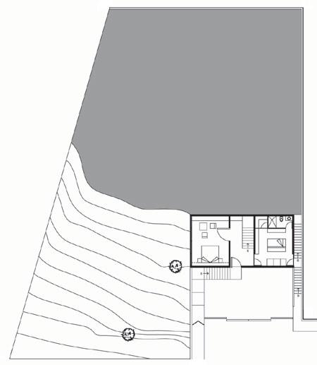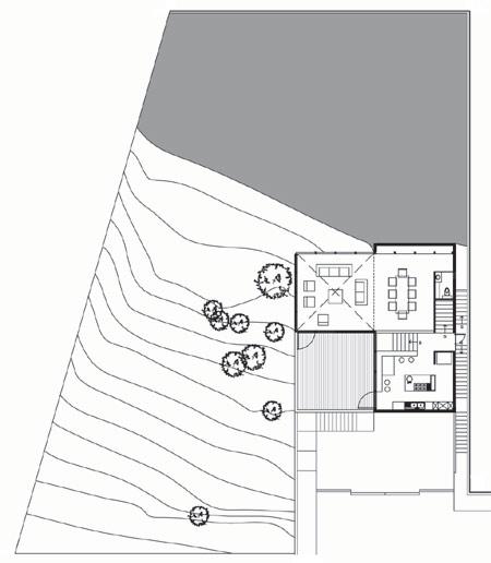The house borders on a wooded area to the west, so most of the views look east, with existing trees acting as light filters. The common areas (kitchen, living room, dining room, and terrace) form a continuous space that is transformed, in accordance with its function, by variations in height and penetrations of the exterior terraces into the interior.