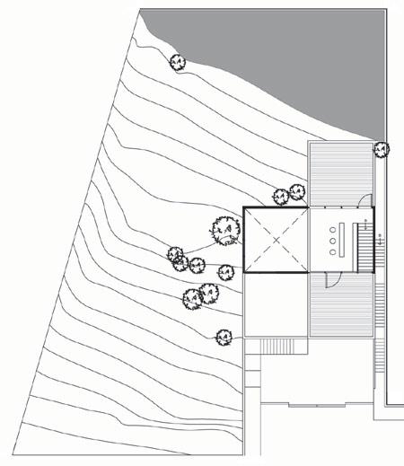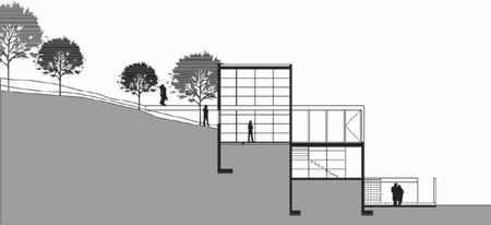 The house is located in the Condado de Sayavedra development of the Zona Esmeralda in Estado de México. Construction was planned in two stages: first the common areas and the services, toward the front of the lot; then the three bedrooms, a studio, and a gymnasium. The first stage has been completed, with the library serving provisionally as a bedroom and the service area as bathroom and dressing room. The design exploits the natural slope of the lot (10 meters) and optimizes circulations. Several 6 × 6 meter volumes, overlapping one another, create a series of rooftop terraces.