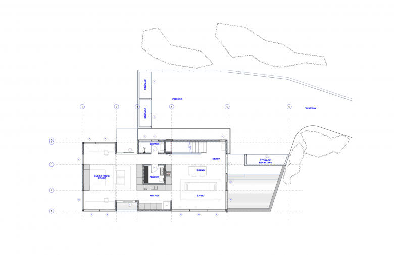 Additionally, the open plan and spaces were designed to accommodate a more casual style of living, where the kitchen, living area, office/studio area, and even the sleeping rooms all merged into a more integral and interesting architectural space.