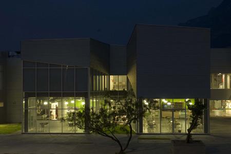 In terms of construction, the building adopts a double strategy: on the one hand a clear and austere metallic structure, and on the other a series of independent claddings and partitions. Interior divisions are created by drywall and glass, while the exterior façades alternate corrugated sheet metal with irregular fenestration, which is determined by interior function. This independence of structure and cladding will facilitate future expansion, making for low operating and maintenance costs.