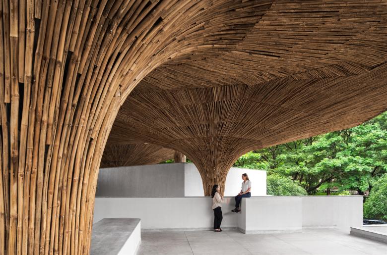 We engaged with craftsmen and empowered them to utilize their tool, bamboo, in a very different scale. The network of parasols covered the terrace, intersecting at strategic locations to create a cohesive and functional space.