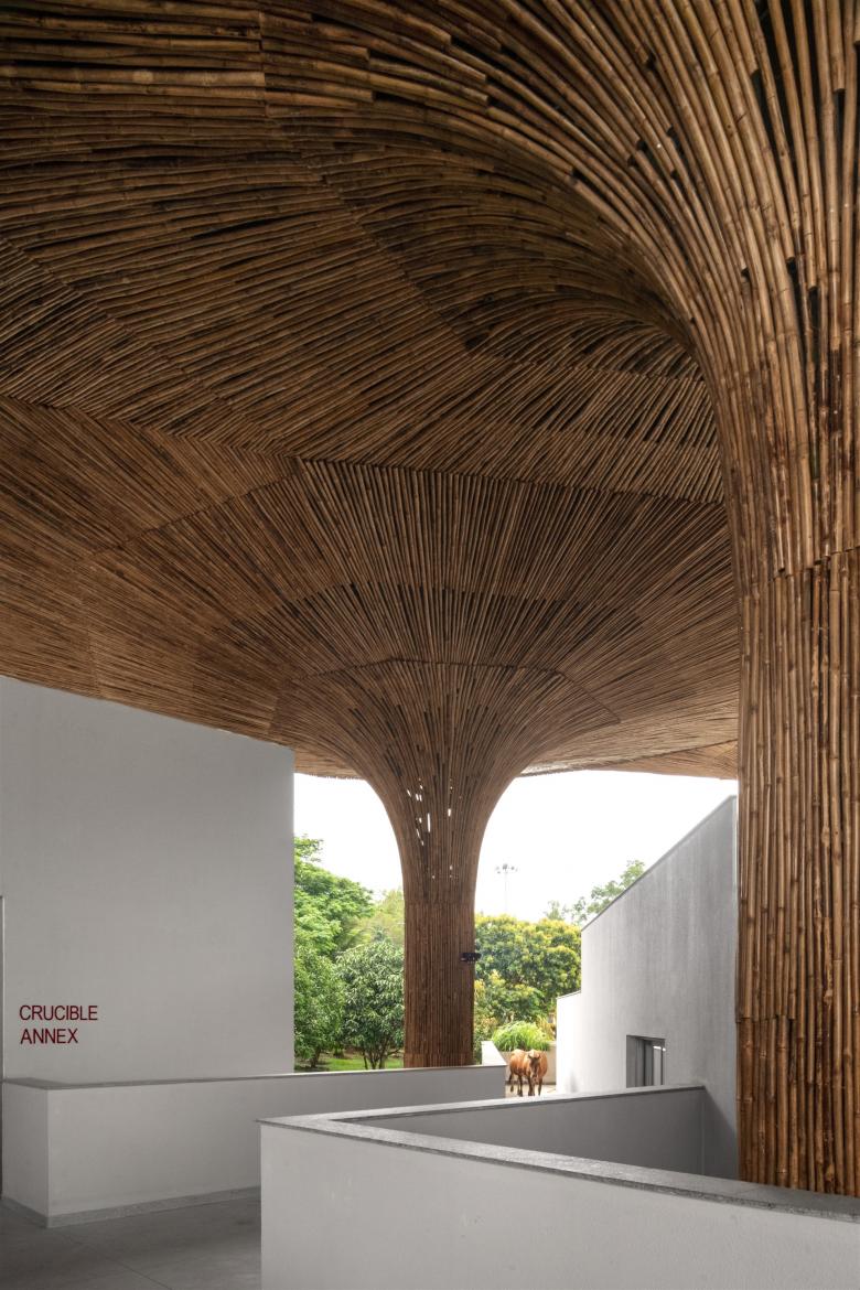 The idea of craft as construction had two distinct approaches coming together. The regional context took a strong point in the design process, the idea of craft also weaved a strong dialogue with the building through the bamboo parasols.