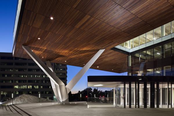 There are several key attributes that contribute to repositioning: first and foremost, the grand-scale civic plaza. Sited on the primary axis of arrival from the train station, the building’s picturesque fourth floor levitates above the street, forming an “urban room.” The void draws the street space into a room beneath a protecting overhang. A sculptural three-fingered tree column offers an art piece to the community and pivots the axis into the site. This spatial frame in plan and section generates a gateway about the western corner.