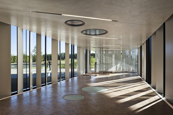 The second important attribute to repositioning the building is the integration of the landscape to unify the best qualities of suburban New Jersey environment with the building. Animating the topography creates smaller scaled arrival rooms for the car and enlivens pedestrian sequences leading to the plaza. Thus, the landscape design serves to bring nature into direct dialogue with the building.