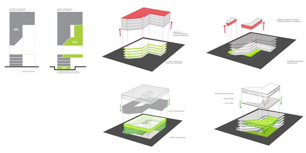 Green roof design was greatly simplified and deferred until later buildings of the master plan are implemented which will benefit from green the roof aesthetic.