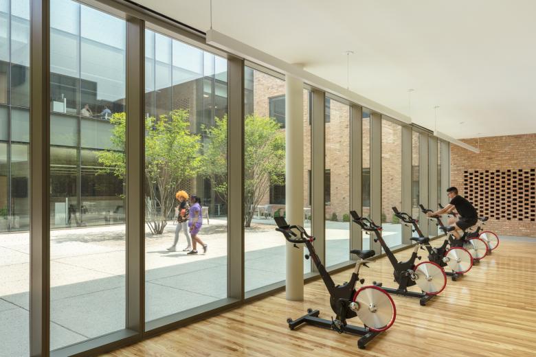Fitness room next to one of the courtyards (Photo: James Florio)