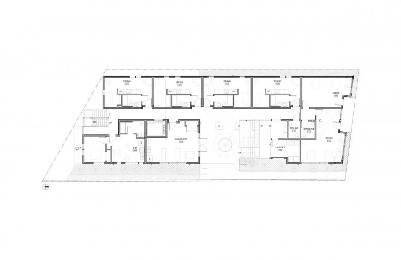 Chiles House is an infill affordable housing complex designed by All Hands Architecture. Like many cities, Portland, Oregon, is currently experiencing a housing crisis, and the project brief was to bring uplifting housing to the city's most vulnerable citizens as quickly as possible. The building provides transitional housing to people that are currently experiencing homelessness, as well as recently arrived international refugees. Both of these groups have endured trauma, and the building utilizes trauma-informed design to create a calm environment that lowers emotional stress. Open-air, naturally lit circulation and exposed wood ceilings provide a healing living experience that is all too rare in transitional housing. Ground-floor offices provide support services for the residents, with further wraparound support from the Catholic Charities of Oregon headquarters in the building next door.