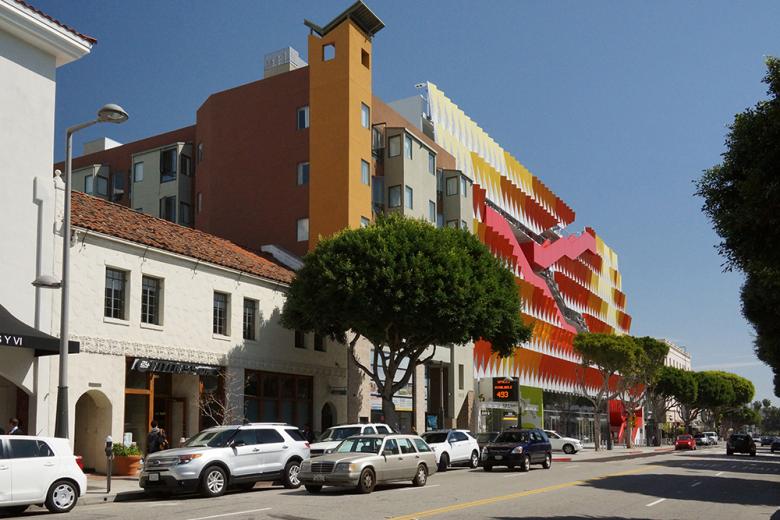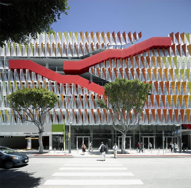 Parking garages are a necessary evil in cities, particularly in an auto-centric metropolis like Los Angeles. Yet while most garages are bland additions to cityscapes, they can also be canvases for creative expression, as in the case of this colorful structure designed by Behnisch Architekten for the City of Santa Monica. The 744 parking spaces sit behind a facade of red, orange and yellow panels and snaking stairs, enlivening its street just two blocks from the beach. Architect Christof Jantzen answered a few questions about the project.