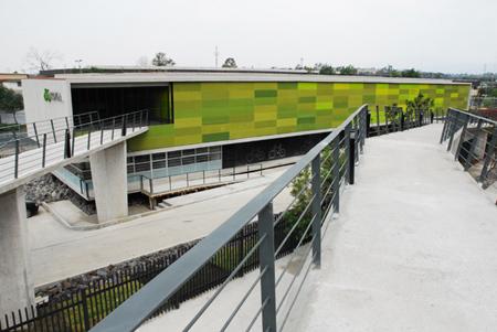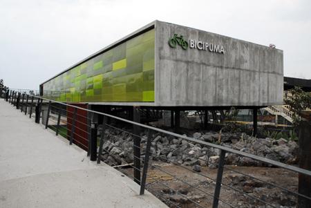 Fifty-five years later, this urban organism is alive and being reactivated by new infrastructure that includes buildings as well as physical and virtual networks: a development that brings together teaching, research, and broadcasting, alongside bicycle paths, pedestrian networks, and public transport, to recover the spirit which originally breathed life into University City. In recent years, the special projects office under the direction of Felipe Leal has constructed forty new buildings to be integrated into the context of their modernist forebears, including two outstanding designs by Leal himself: a self-service bicycle center for those who use this method of transport on the campus, and the gift shop of the UNAM's own Pumas soccer team.