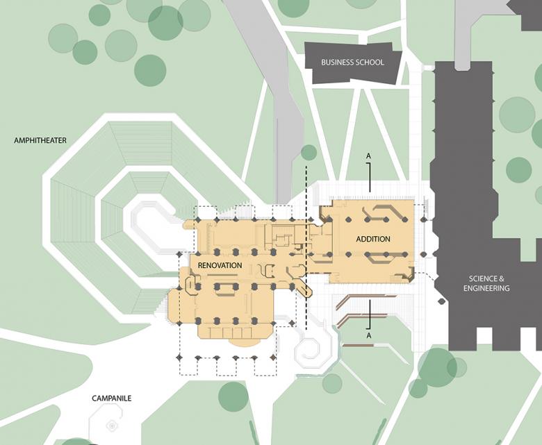 Site Plan showing renovation and addition areas at the first floor