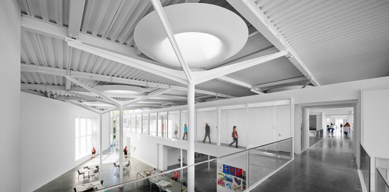 We discovered early in the design process that all programs form a close community with a rich culture of collaboration. To cultivate this sense of community within the new addition, program elements are intermingled to generate an environment for “cross pollination” between programs and disciplines through adjacency, allowing students to learn from other students and faculty though informal creative exchanges.