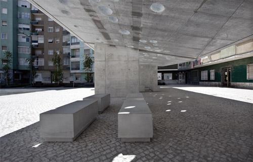 In this changing architectural context, the chirurgical interventions in the public space of an extensive housing periphery of Lisbon, made by the young Portuguese practice Ateliermob, acquires a strong meaning. In their words, "this project assumes a particular relevance to our firm, for being the first built public space designed by ateliermob." In fact, the rehabilitation of this disqualified vast housing zones, where the great majority of the population that uses the city of Lisbon lives, is a crucial task to a sustainable future of the metropolitan area. In a sense, there is no sustainability in the cities without social cohesion and collective appropriation of their public spaces. This project is a small but relevant step in that direction. The most interesting aspect of this intervention is the strategy that was adopted. Countering the abstract and totalizing practices of planning, this series of small interventions shows a more contextual and specific approach, showing that little projects and limited budgets can make a difference in disqualified urban areas.