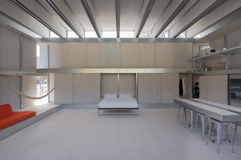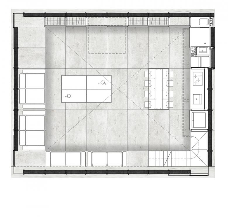 The project also explores the opportunities of inhabiting a multipurpose domestic space that can be used 24/7: by giving all the square meters to the same room, a monumental space is created that is used for everything!