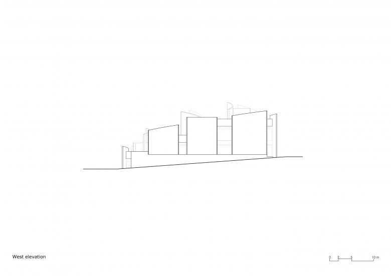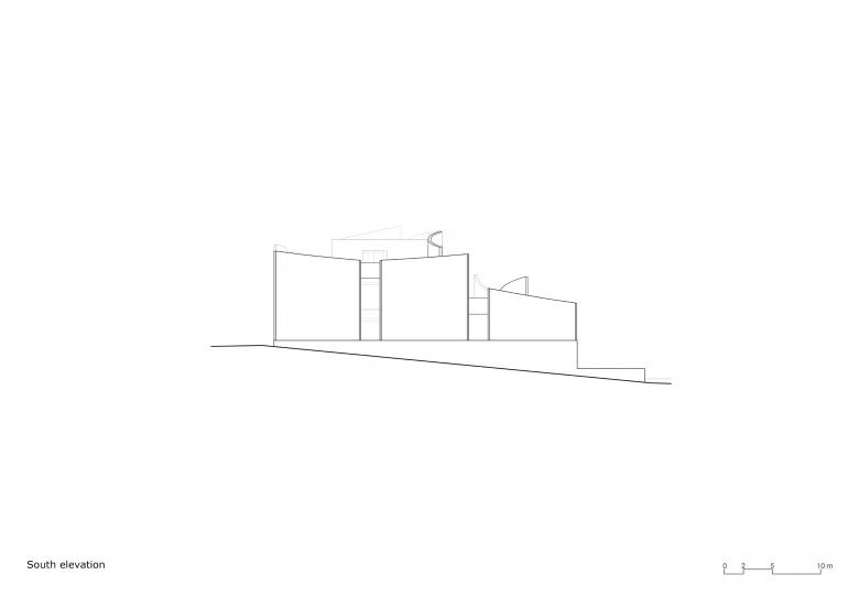 This structure draws inspiration from Land Art. It is an exercise in creating filters rather than walls—elements that orchestrate the flow between interior and exterior; stalks that unite rather than barriers that divide. The glass, which allows light to penetrate between the concrete blades, is a technical component, yet not essential to grasping the conceptual meaning of this landscape sculpture.