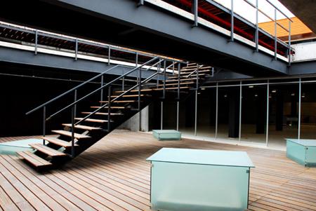 Thus, the private areas maintain a direct relation with the terrain, in the lower part of the building, while the public one -administrative offices, classrooms, auditorium, and library- are on the upper floors, with a visual connection to the rural surroundings.