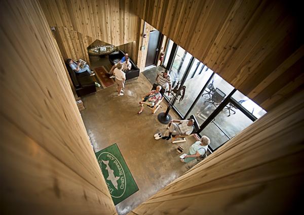 After a full-immersion into Dogfish Head culture, we performed a programming analysis that revealed the need for additional space, doubling the scope of the project to accommodate the growth of their eclectic operations. The fit-out expanded into a new addition and an opportunity to disrupt the prosaic symmetry of the brick and stucco facility in favor of something in-line with their “off-centered” philosophy. The ensuing site analysis led to a comprehensive landscape plan, strategically reconfiguring the drop-off and fire truck access in favor of new greenspace including two regulation bocce courts and an additional conference room in the form of the the Steampunk Treehouse.