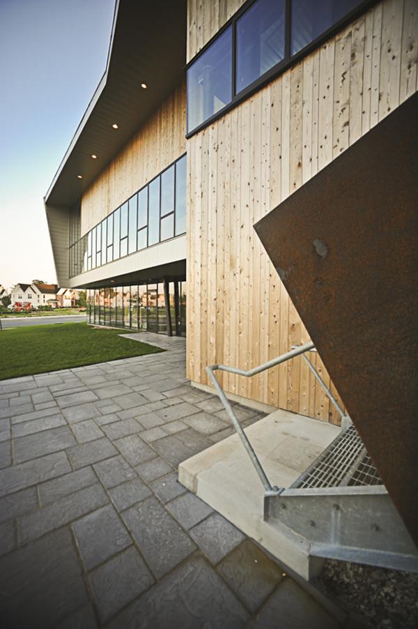 The project integrated straight-forward techniques to achieve efficiencies in use of material, water, and energy. The site design incorporated infiltration areas and pervious surfaces over what had previously been impervious pavement. Daylight modeling was utilized to locate windows and roof monitors, minimizing the need for artificial light. Most interior lighting is provided by high-efficient LED fixtures integrated into the steel joists. Local and salvaged materials were utilized for the cladding and furniture.