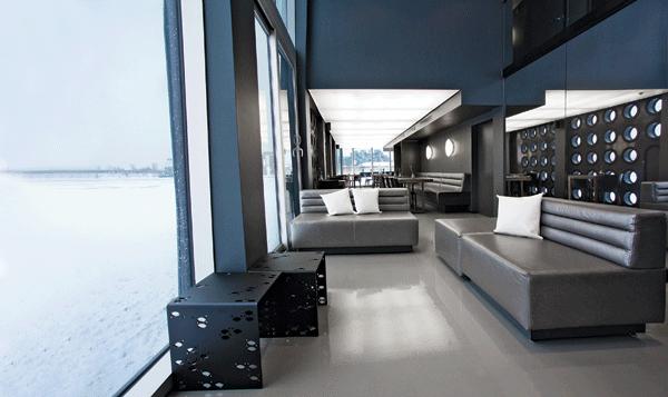 teamed up with the firm to form Sid Lee Architecture. Pelland and Leblanc had worked with the Émonds previously, designing the Balnéa spa in Quebec’s Eastern Townships. Sid Lee contributed marketing, branding and graphics to the Bota Bota project.