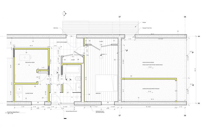 As it was a priority for both our client and ourselves, we were focused on making the home very sustainable and energy efficient. While this informed the design of the home in a significant way we didn't want the house and cottage to wear their green credentials on their sleeve as an aesthetic. The house was built with ICFs, strategically glazed with low-e assemblies and clad in high albedo mill finish aluminum. We designed deep eaves into the largest expanses of glass based on our solar studies. The home and cottage ended up being so well insulated that we needed to specify an EVR unit for fresh air exchange. An on demand hot water system precludes any wasted energy on water heaters when the home is unoccupied and also heats the home through a hydronic radiant slab. Low flow fixtures, dual flush toilets, LED lighting, high efficiency appliances and sustainably grown lumber were all specified and employed. The security system for the home was augmented to allow the mechanical systems to be remotely accessed and controlled during extended periods of absence as well.