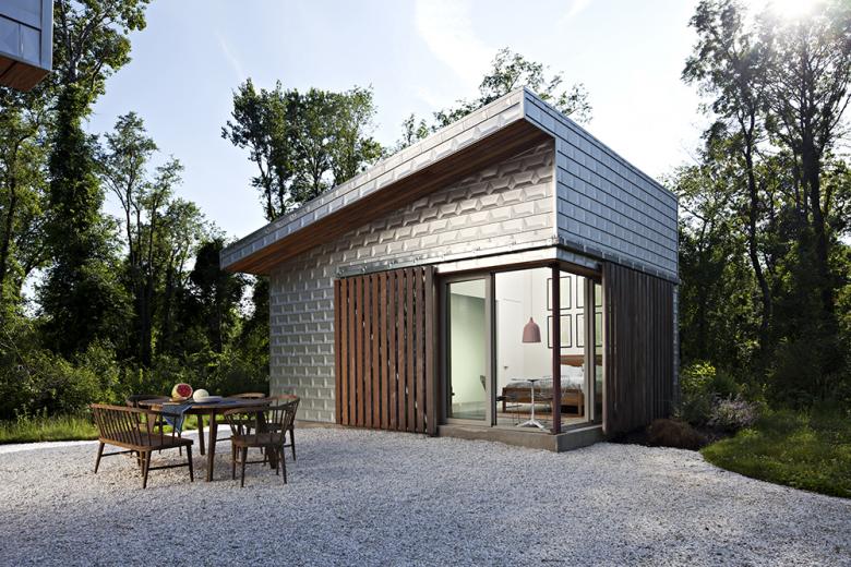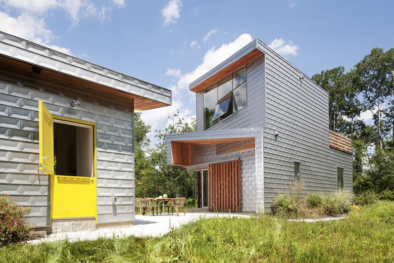 When Grzywinski + Pons was commissioned to design this house we were excited by a brief and directive from the client that was very specific programmatically and where budget had primacy but was open to whatever form that might manifest from our process in addressing their requests. The house was conceived as a country home initially used as a complement to and reprieve from their apartment in the city, that could ultimately evolve into a primary residence. They wanted a detached cottage or guest house that could accommodate their visiting elderly parents for extended stays from the west coast, and be available to rent out on a nightly basis at their discretion to help defray costs. Another request was to create a place that felt very open to it's beautiful surroundings yet could be battened down and secured during any extended periods when it was unoccupied. Furthermore, the client - when anticipating stays in the house alone - requested we create a master bedroom suite that allowed unfettered access to the outdoors (both physically and visually) from a safe "perch" when the ground floor was secured for the night.