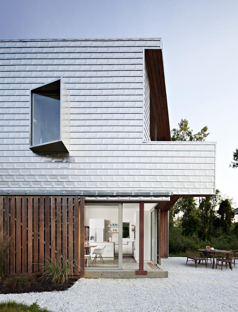 While having things change via value engineering during both the design and construction process is certainly nothing new, something unique (for us) that occurred on this project was making a significant change on the exterior cladding even after the bid came in to sheathe the house because of the time it took to get to that stage. We originally specified standing seam copper cladding, bid it out, and got it to work within the budget. When it came time for the subcontractor to purchase the material the price of copper had risen so precipitously that it was no longer financially viable. Making the switch to aluminum was ultimately something we became excited about - after site testing some early samples we were very excited about how well the mill finish interacted with the environment. It was however enlightening to be reminded that some raw materials are in fact commodities and fluctuate with some volatility as such.