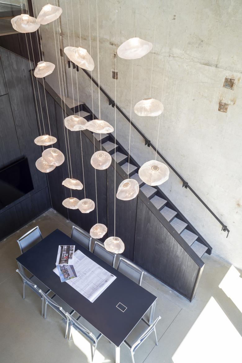 • Artemide Nur Acoustic light over center table in kitchen