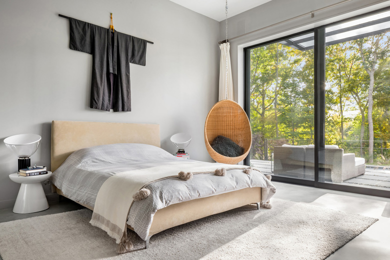 Many other objects in the house are homages to women architects from the past: Eileen Gray's mirror from her villa E27 is prominently hung in master bath; Ray Eames’s "La Chaise" and Gae Aulenti’s lamp in the living room; and, in the Pool House bedrooms, the LC2 Poltrona Petit Comfort designed by Charlotte Perriand, to name just a few.