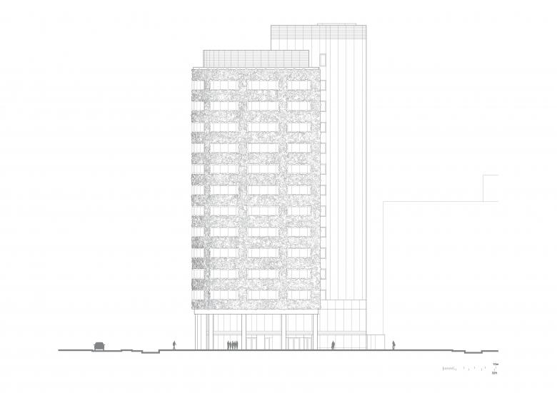 We knew from the outset that we wanted to do something a bit different, having designed two other distinctive buildings for the masterplan (Four New Bailey and Three New Bailey). The idea to include a green wall was conceived during Covid-19 lockdowns, when we were all craving closer connections with nature. We looked at precedent case studies, such as London Wall Place, and we thought a green wall could work in Salford.